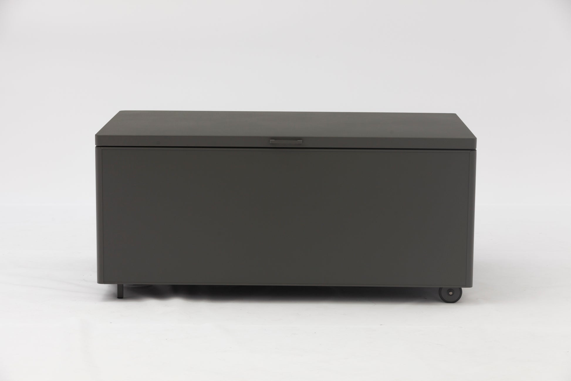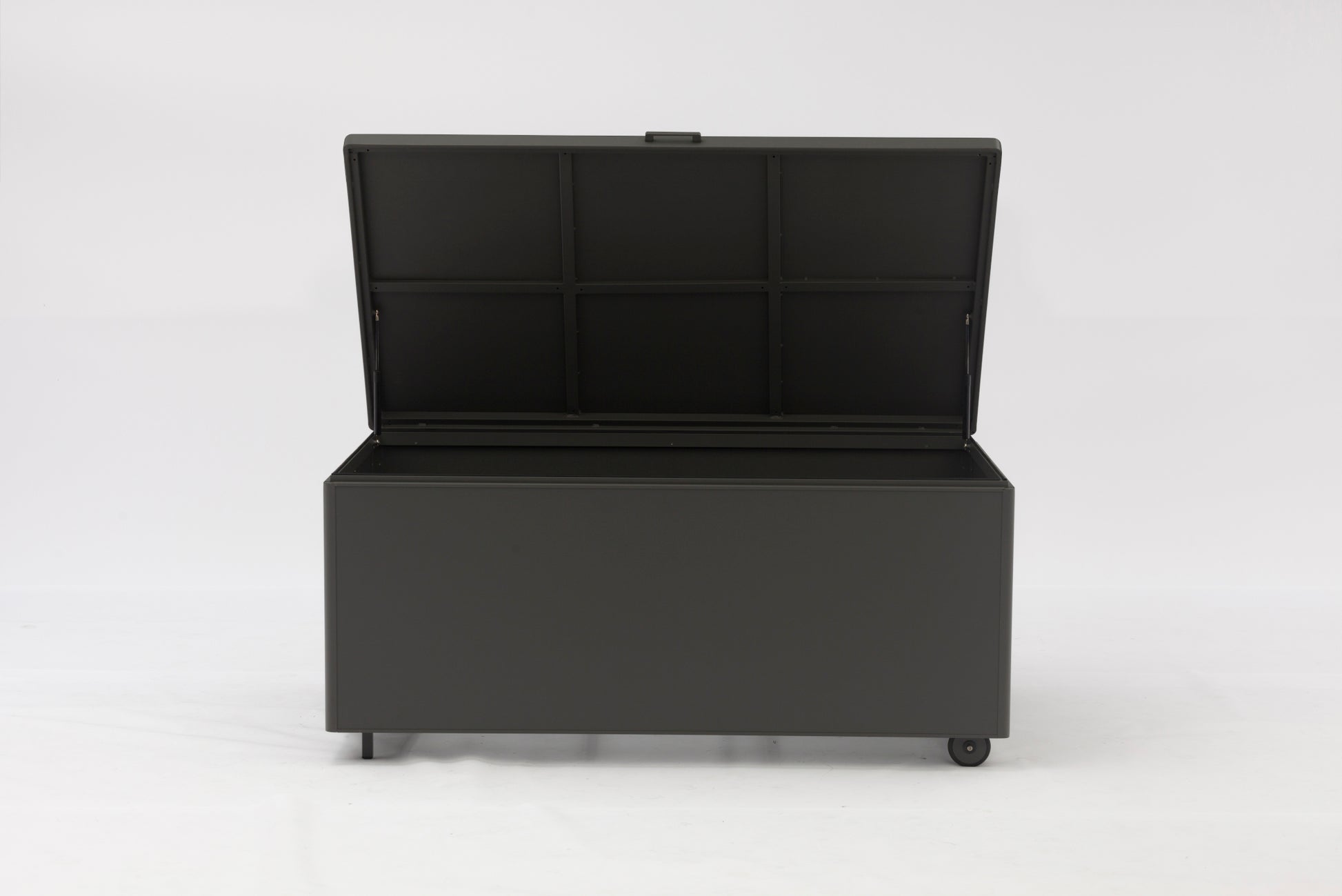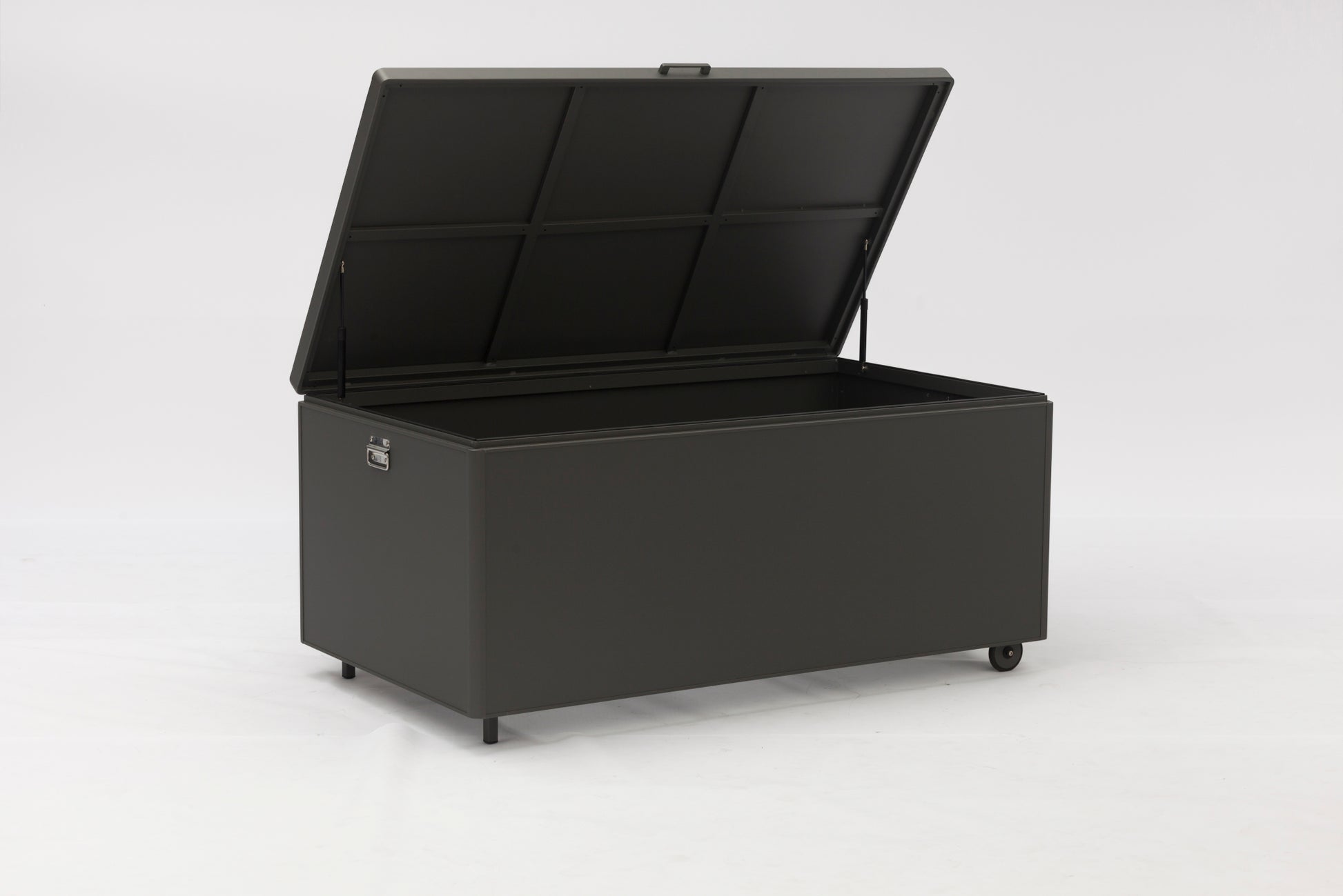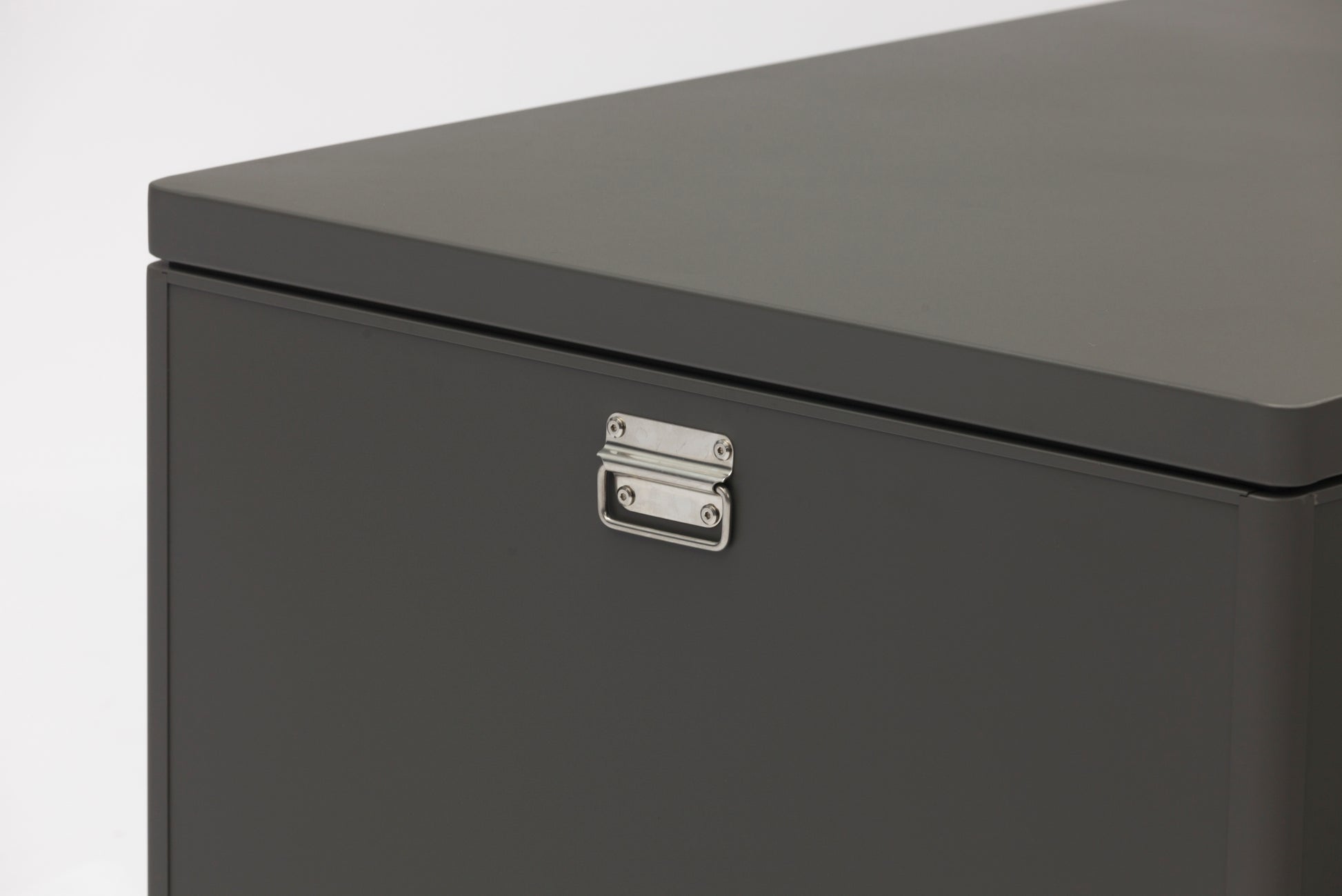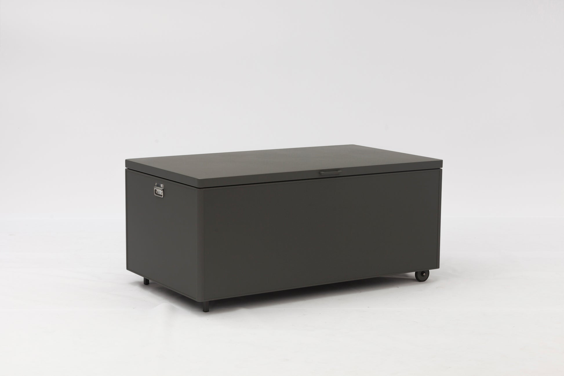 Die wasserfeste Alena Alu-Kissentruhe in mittlerer Grösse bietet grosszügigen Stauraum für Ihre Gartenutensilien. Sie eignet sich ideal zur sicheren Aufbewahrung von Sitzpolstern und Kissen. Dank der zwei integrierten Rollen lässt sich die Box mühelos verschieben. Zusätzlich sorgt ein hydraulischer Mechanismus dafür, dass sich der Deckel bequem öffnen und schliessen lässt.